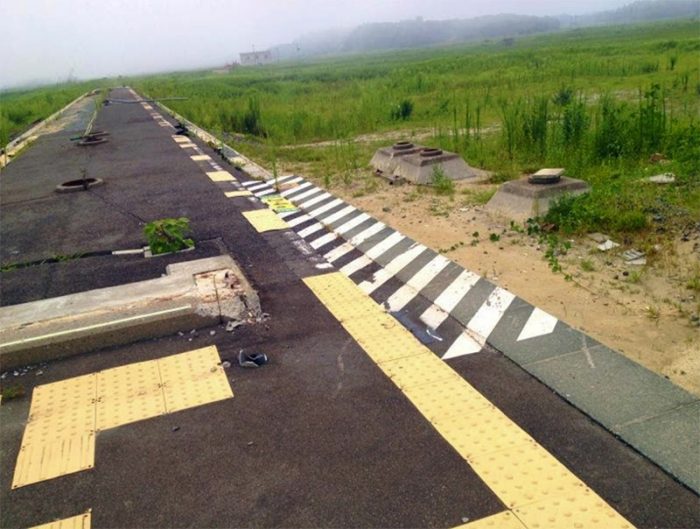 ▲写真 宮城県山元町内の常磐線駅ホーム。津波で押し流され線路は跡形もなかった。(2013年8月著者撮影)