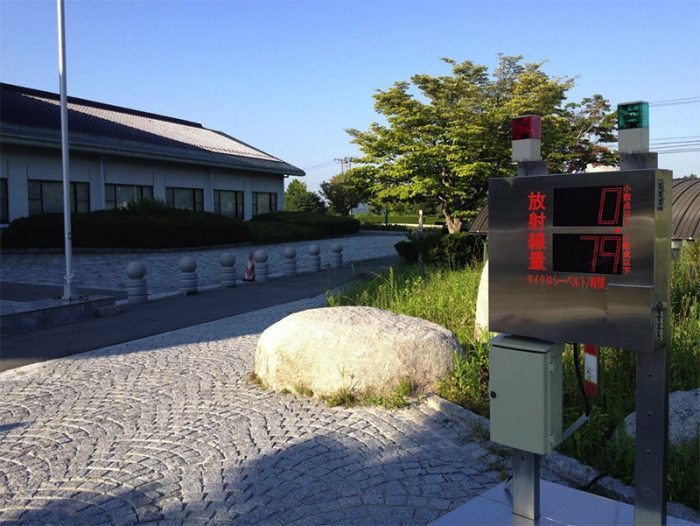 ▲写真 飯舘村役場前の空間放射線量を示す掲示板(2013年8月撮影。著者提供)