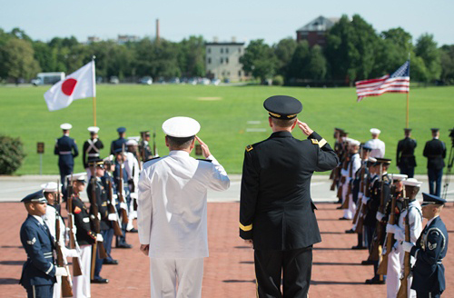 ワシントンでの報道活動の楽しみの一つは、日本でなら簡単には会えない日本各界の枢要人物に頻繁に接する機会があることだ。ついこの7月16日には自衛隊の制服組のトップの河野克俊統合幕僚長の話しを聞くことができた。河野幕僚長が日本の安保法制に関する中国人記者の誇大な非難の質問をさらりと切り返したのがとくに印象的だった。河野幕僚長は米軍のマーチン・デンプシー統合参謀本部議長の招待で7月12日からアメリカを公式訪問し、16日にはワシントンの大手研究機関の戦略国際問題研究所(CSIS)で講演した。「日米同盟の推移と前進」というタイトルで、日本を囲む安全保障状況が主体、河野幕僚長は北朝鮮の核とミサイルの脅威や中国の大規模な軍拡による日本への重圧について明確に語り、同盟国のアメリカとの連携強化についても説明した。