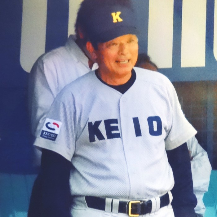 ※トップ画像:ベンチでの江藤監督。グレーの慶應の伝統のユニフォームが良く似合う。