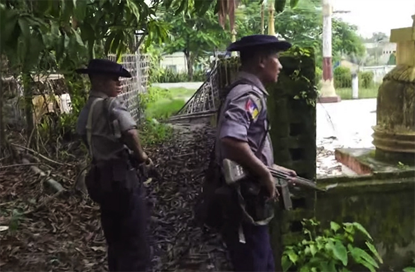 ▲写真 ARSAによる襲撃のあったマウンド―をパトロールするミャンマー国軍(2017年9月)出典:photo by Steve Sandford