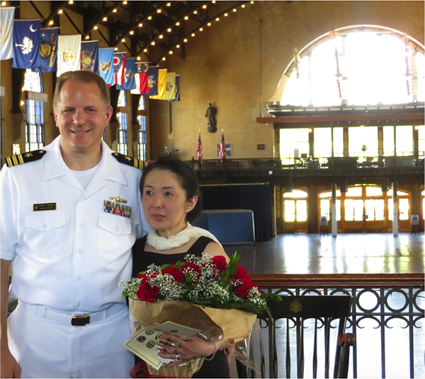 24日の退役式典は同校内の広大なホールで上官や同僚、学生、家族が100人近くも出席して、厳粛に開かれた。ホールのある伝統的な建物の前庭には太平洋での日米戦争で日本海軍が使った魚雷のレプリカが二基、飾られていた。アメリカ海軍の歴史では日本海軍との戦いがどれほど大きな比重を占めたかの例証でもあった。