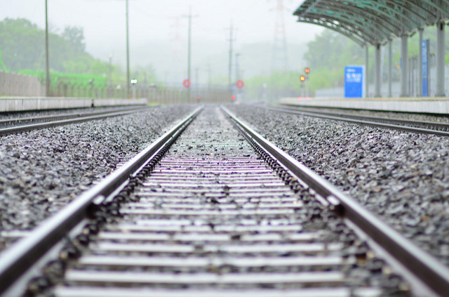 写真)北朝鮮へと続く京義線の線路。写真は北朝鮮に最も近い韓国側の都羅山(トラサン)駅付近