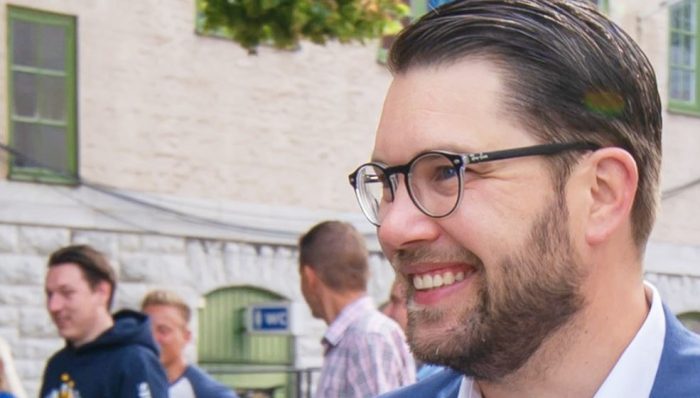 写真)スウェーデン民主党 ジミーオケーソン党首(2018年9月9日)