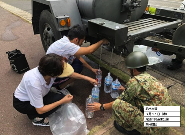 ▲写真 平成30年7月豪雨に係る災害派遣(給水支援)尾道市 出典:陸上自衛隊