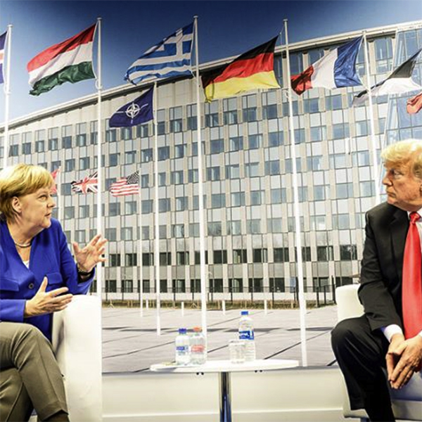 ▲写真 NATO(北大西洋条約機構)首脳会議(於:ブリュッセル)に出席したメルケル独首相とトランプ米大統領(2018年7月12日)出典:メルケル独首相のインスタグラム