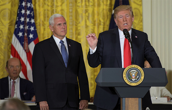 ▲写真 トランプ米大統領(右)とペンス副大統領(左)出典:flickr NASA HQ PHOTO
