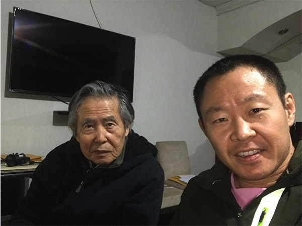 ▲写真 フジモリ元大統領と長男・ケンジ氏(2018年6月8日) 出典:ケンジ氏のツイッターより