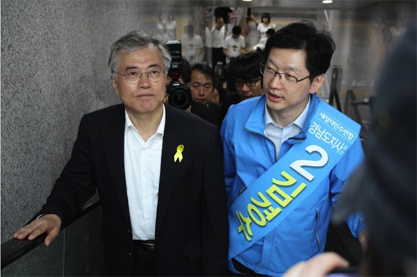 ▲写真 金慶洙・慶尚南道知事(右)と文在寅現大統領(左)2014年当時 出典:Newsletter