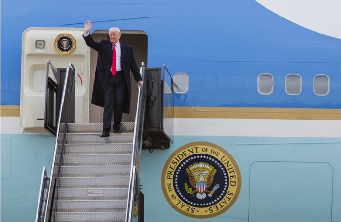 ▲写真 Airforce1から降りるトランプ大統領 出典:Official United States Air Force Website