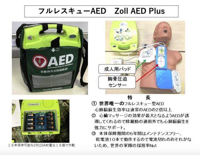 道具を用いた方が効率が良いのは救命も同じである。筆者が南アフリカ、コロンビアなど世界各地で目にするAEDは写真にある“Zoll AED Plus”である。
