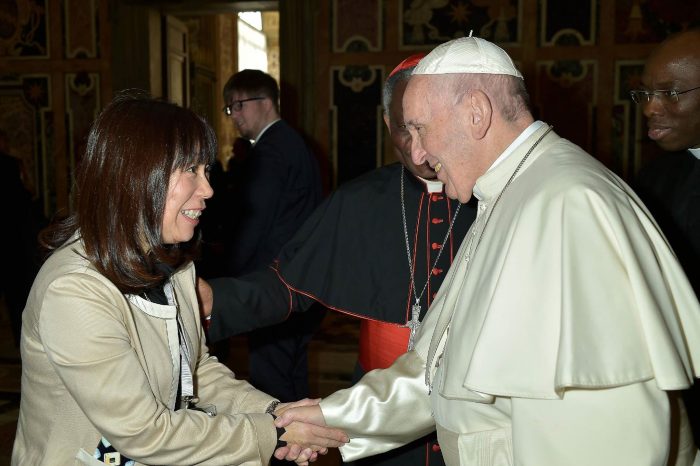写真)法王に謁見する田中紀子氏