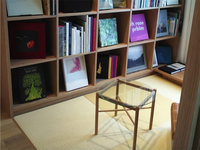 客室の内装は、全体的に無印らしいシンプルな空間で、一つ一つの部屋は細長く奥行きがあり、布や木、石など自然素材が用いられている。また、奥に畳の小上がりがあったり、花鳥風月をテーマに厳選された本棚を備えていたりと日本の文化も随所に感じられ、落ち着いた空間が広がっている。