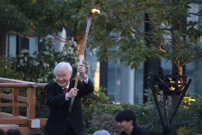 ▲写真 火入れ式を行った中央区 矢田美英区長 ©Japan In-depth編集部