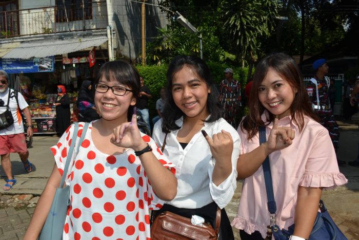 首都ジャカルタの南部クバグサンにある投票所ではジョコウィ大統領が所属する与党「闘争民主党(PDIP)」の党首で独立の父スカルノ大統領の長女で第5代大統領を務めたメガワティ・スカルノプトリさんが家族とともに1票を投じた。投票後メガワティ元大統領は「投票結果がどうであれ、我々はそれを受け入れる」と民意を尊重する姿勢を表明した。