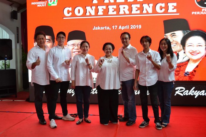 17日午後5時(日本時間午後7時)に支持する政党の党首、マアルフ・アミン副大統領候補とともに報道陣に前に姿を現したジョコウィ大統領は「速報値の結果は見ての通りだが、選挙管理委員会の正式な投票結果がでるまで待とう」と呼びかけた。