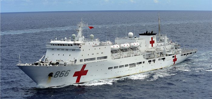 ▲写真 中国は災害救難に熱心だ。特に海軍力の急成長と海洋主権の強引な主張への反感緩和から病院船活動を熱心に行っている。写真は医療船「岱山島」号、平和方舟と称されている。 出典:米海軍写真(撮影:Shannon Renfroe)