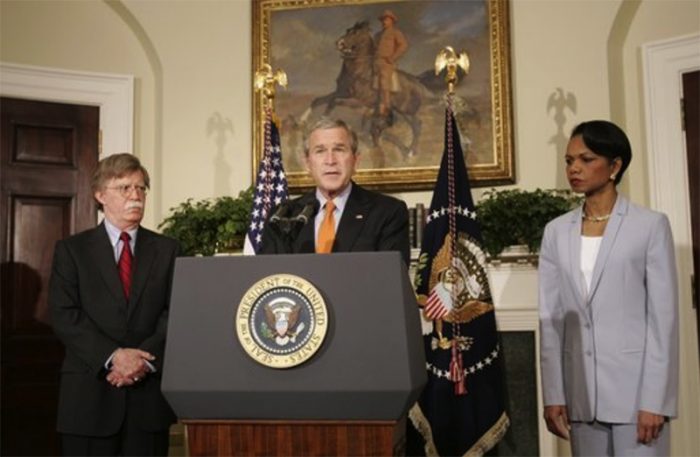 ▲写真 ジョージ・W・ブッシュ大統領がボルトン氏を国連大使に任命すると発表(2005年8月1日)出典: White House photo by Paul Morse(Public domain)