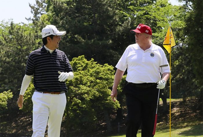 ▲写真 ゴルフをする安倍首相とトランプ大統領 出典:首相官邸Twitter