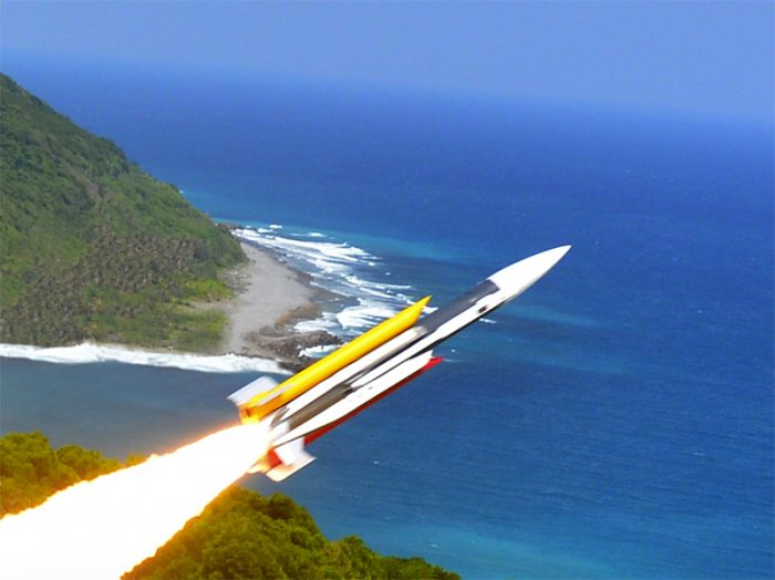 ▲写真 雄風3型 超音速ミサイルでは信管動作の確実性も問題となる。台湾の海軍が超音速ミサイルを誤射した際には信管は動作しなかった。信管の信頼性を積み上げていない日本製ミサイルでも同様の不動作は起きうる。写真は雄風3型。 出典:台湾側の『国家中山科学研究院』HPの「雄風三型超音速反艦飛弾」より入手。