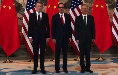 ▲写真 米中貿易交渉。左からライトハイザー米通商代表、ムニューシン米財務長官、中国の劉鶴副首相(2019年5月1日 ワシントンD.C.)