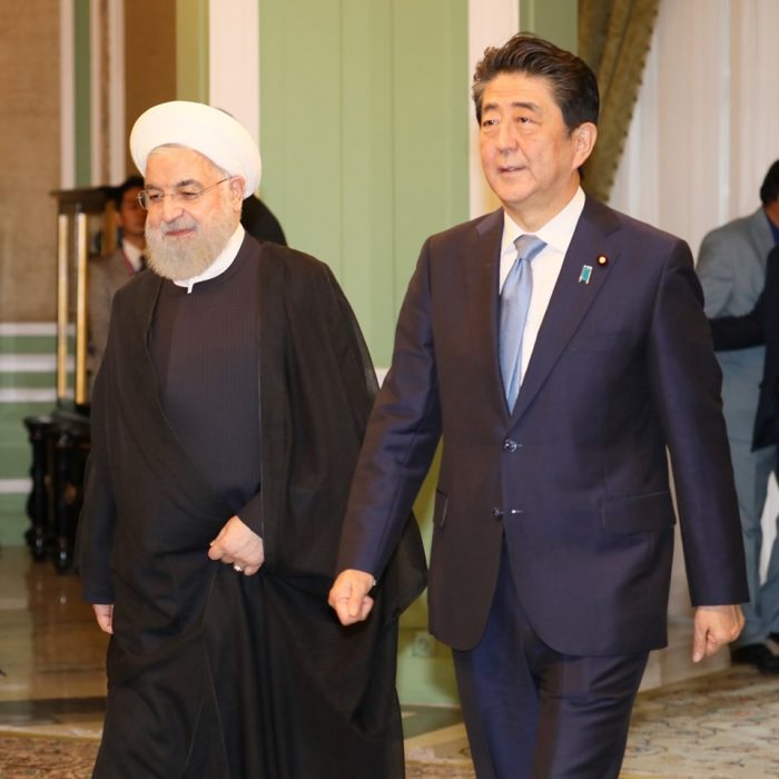 ▲写真 イラン公式訪問中 ローハニ大統領と安倍首相 出典:首相官邸Facebook