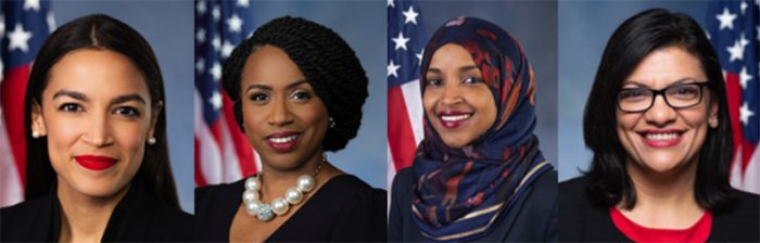 ▲写真 The squadの4議員。左からアレクサンドラ・オカシオ=コルテズ、アヤナ・プレスリー、イルハン・オマール、ラシーダ・タリブ各議員。出典:Public domain