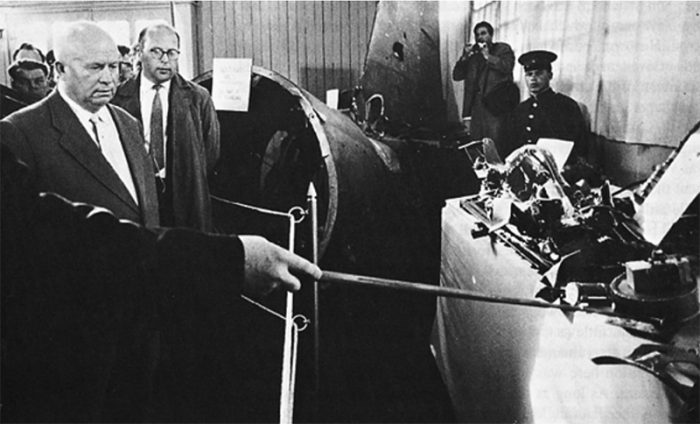 ▲写真 撃墜したU2機の残骸を視察するニキータ・フルシチョフ書記長(1960年)出典:Wikimedia Commons; Public Domain