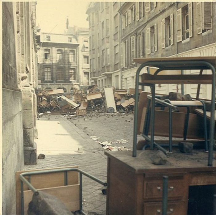 ▲写真 街路に築かれたバリケード(1968年5月 仏・ボルドー)出典:Wikimedia Commons; Public domain
