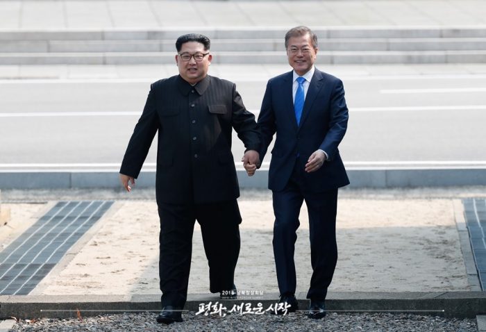 写真)金正恩氏(左)と文在寅氏(右)(南北首脳会談、2018)
