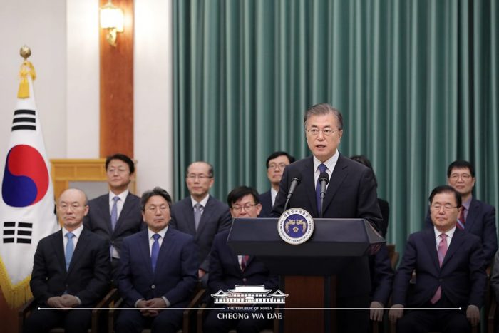 ▲写真 曺国氏の法務部長官任命後会見する文在寅大統領(2019年9月9日)出典:青瓦台facebook