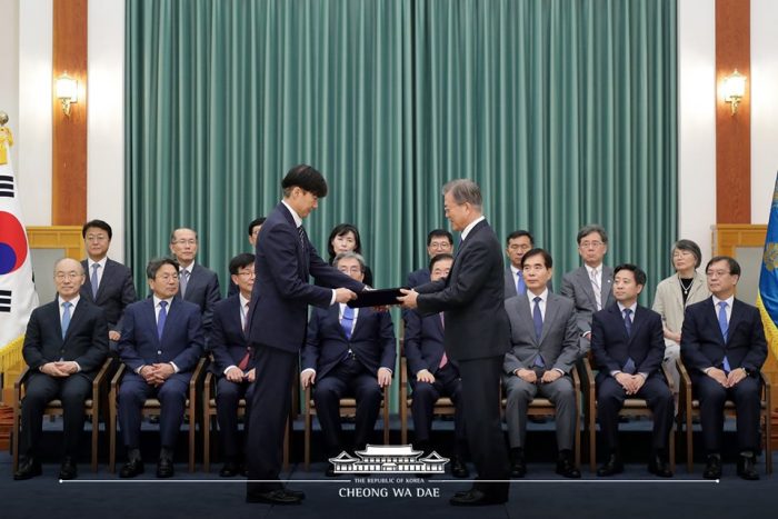 ▲写真 曺国氏を法務部長官に任命する文在寅大統領(2019年9月9日)出典:青瓦台facebook