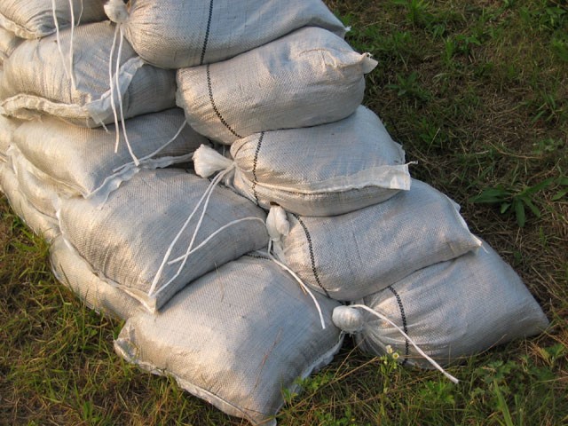 ▲写真 土のう(2005年6月小松市の梯川堤防上にて) 出典:Photo by shift