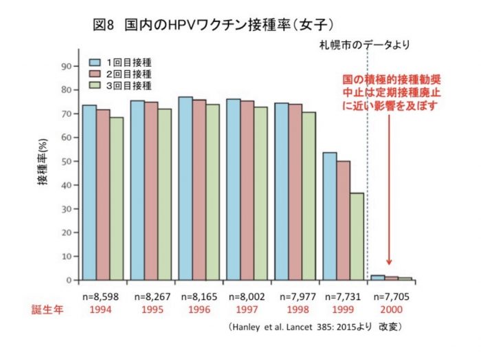 2010年4月から3年間、国は「子宮頸がん等ワクチン接種緊急促進事業」を実施し、HPVワクチンも公費負担で広く接種できるようになった。2013年4月からは定期接種になったが、その前後に、HPVワクチンの副反応の疑いについて報道がなされ、2013年6月には、厚生労働省は積極的におすすめするのは一時中止する、と発表した。その結果、一時ピークで75%台にまで達した、10代〜20代女性のワクチン接種率は現在1%以下に落ち込んでいる。これは先進国の中では極めて異例な数字である。