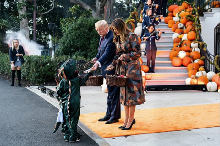 ▲写真 ハロウィーンで仮装した子どもたちにキャンディを配るトランプ大統領とメラニア夫人(2019年10月28日 ホワイトハウス)出典: Flickr; The White House