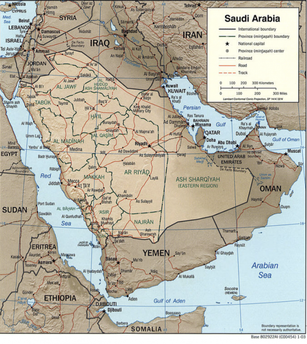 ▲写真 サウジアラビア地図(CIA 2003年作成)