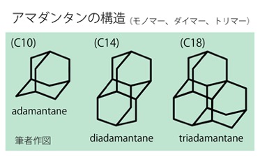 ▲図 アマダンタンは将来航空燃料としてよく言及される。融点は高いが燃料には容易に溶解する。塩は800度まで溶融しないが20度の水でも溶解することと同じである。筆者作図