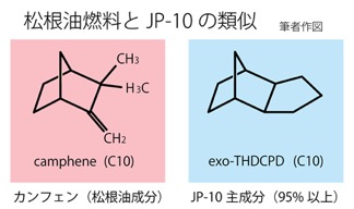 松根油燃料はそれを実現する利益がある。その比重は0.93におよぶ。(※3)主成分であるカンフェン、αピネン、リモネンを抽出する。その分子をダイマー、トリマーとして重連、三連につなげればその程度の比重に達する。