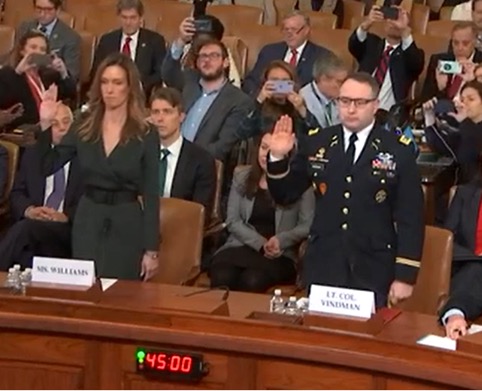 イヴァノヴィッチ前駐ウクライナ大使と並び、公聴会に出席する前からトランプ大統領や保守系メディアによって中傷を受けていたヴィンドマン中佐は、米国家安全保障会議におけるロシア担当首席アドバイザー。陸軍の軍人として韓国やドイツに赴任後、イラク戦争に赴いた際、爆撃によって負傷、パープルハートを授与されている。議会で証言する現役の軍人は軍服を着るのが正装だが、トランプや保守派メディアはそれを「わざとらしい」と非難した。