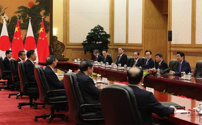 安倍晋三首相と習近平国家主席による日中首脳会談は12月23日、北京で開かれた。両国政府の発表によると、この会談では習主席が「新時代にふさわしい中日関係を構築し、新しい未来を切り開いていく」と語った。安倍首相も「日中関係を新たな段階に次なる高みに引き上げる」と述べたという。