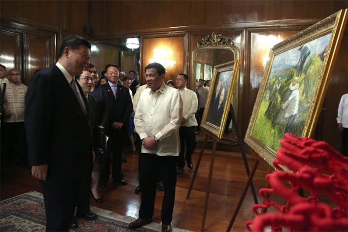 ▲写真 中国の習近平国家主席(左)を接遇するドゥテルテ比大統領(右)(2018年11月20日 マラカニアン宮殿)出典: Rody Duterte facebook / RICHARD MADELO/PRESIDENTIAL PHOTO