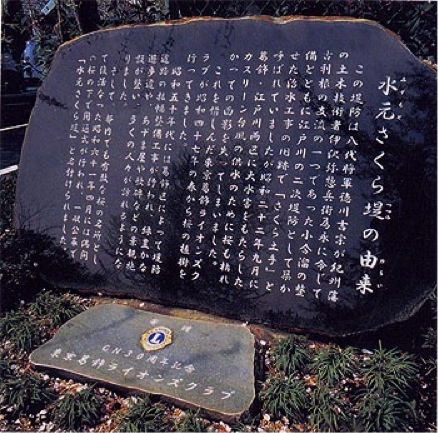 「さくら土手」とも呼ばれたこの堤防は1947年(昭和22年)のカスリーン台風の際に決壊し、桜の木も流されてしまったが、道路整備や桜の植樹を経て「水元さくら堤」として再び葛飾区内の桜の名所に返り咲いた。