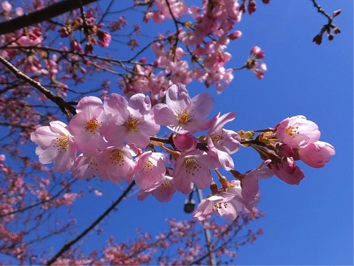 写真)ソメイヨシノの代替種「ジンダイアケボノ(神代曙)」国立劇場前庭で撮影