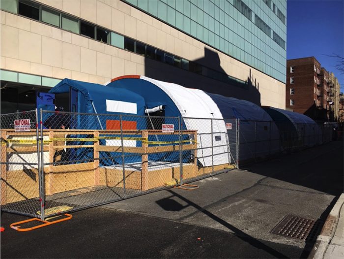 ▲写真 マウントサイナイ病院裏手に設営中の医療テント 撮影:筆者