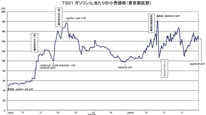 *1 「ガソリン1L当たりの小売価格(東京都区部)」(総務省統計局)https://www.stat.go.jp/data/kouri/doukou/pdf/7301_13.pdf
