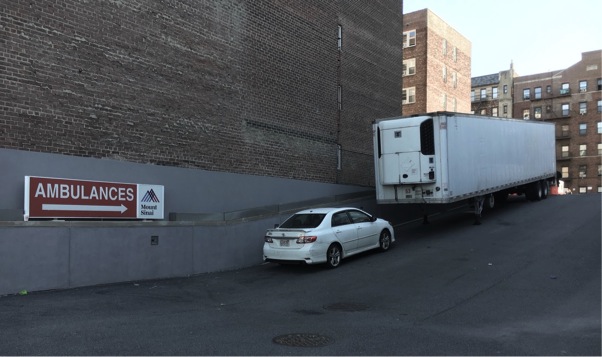 そしてその近くの病院を通りかかってみると、先日は病院の救急車の出入り口の駐車場に漠然と放置されていたかに見えた大きな保冷車のモーターがうなりをあげていた。トレーラーの搬入口には大きな白い布がかけられ、その下にはシーツも敷かれていない無人の黒いストレッチャーが無造作に置かれていた。