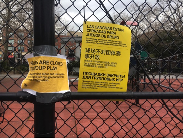 市長が警告したにも関わらず、先日までバスケットボールを楽しむ若者が多くいた公園のバスケットボールコートに行ってみると、各国語で「グループでコートの使用しないこと」と市当局の張り紙があり、人影はなかった。