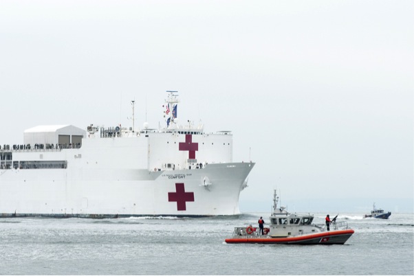 先日、米海軍の病院船「コンフォート(ベッド数750床)」がニューヨークのハドソン川に到着し、国の支援で同じくハドソン川のほとりにある巨大見本市会場「ジャービッツ・コンベンションセンター」に病院(2910床)が整備され、ともに新型コロナウイルスに関係ない一般患者用病院として開設された。この2つの施設は既存の市内の病院が新型コロナ対策に集中出来るよう、新たに設置されたものだ。