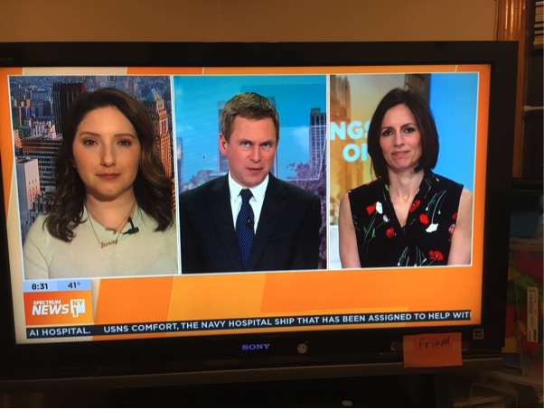 写真)ケーブル局・NY1ニュース。新型コロナがニューヨークで出始める前の通常の放送の状態(局のオフィシャルコマーシャルからの画像キャプチャ)。