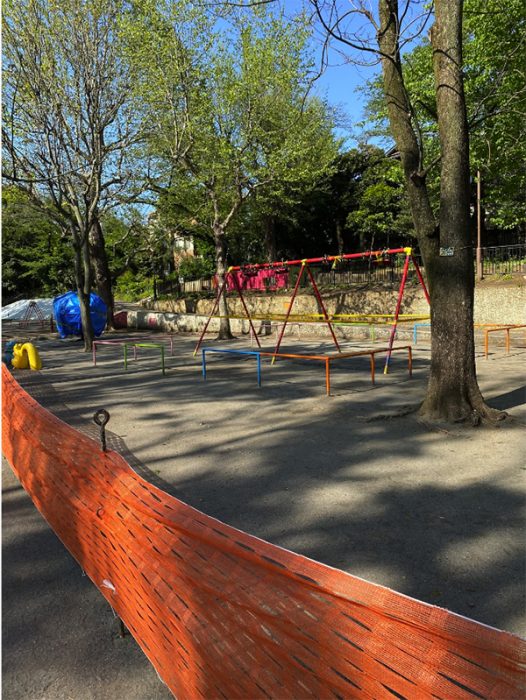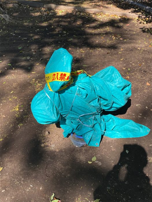 ▲写真 完全にシートにくるまれた遊具 ⒸJapan In-depth編集部